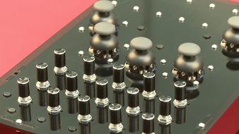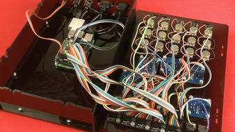 “The Mitt” is a digital synthesizer that explores the fine motor skills of the human hand and the performative aspects of micro gestures. Its tangible interface is constituted by an array of five channels, each composed of an extremely accurate thumb joystick, potentiometers and buttons. The layout follows the morphology of the hand, with each finger resting on top of one joystick, providing extreme gestural amplification of the hand where small movements can have significant impact.